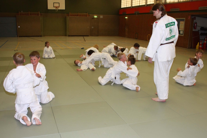 Neben Würfen werden auch Haltetechniken im Boden geübt.